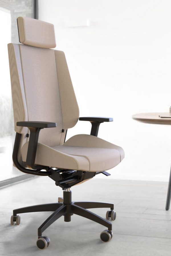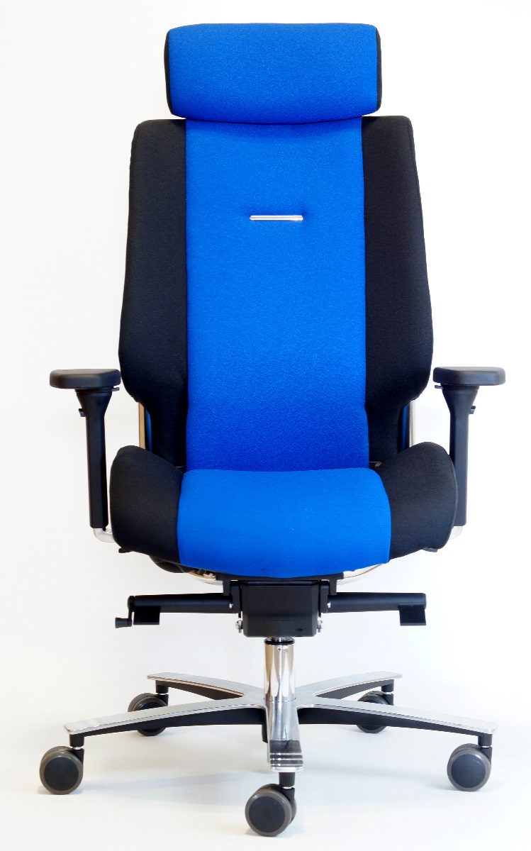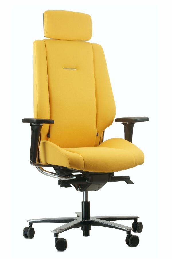 Chaise ergonomique certifiée 24h/24 et 7j/7 pour une utilisation continue. Disponible avec housses d’assise et de dossier. Piètement pivotant 5 branches en aluminium, soutien lombaire réglable en profondeur et en hauteur. Disponible avec un mécanisme synchrone verrouillable à 4 positions, réglage de la hauteur par vérin à gaz et réglage de la profondeur d’assise. Accoudoirs pivotants 5D. Charge maximale : 150 kg. Haute résistance à l’abrasion grâce à la finition Climatex Ultra, résistante jusqu’à 500 000 cycles Martindale.