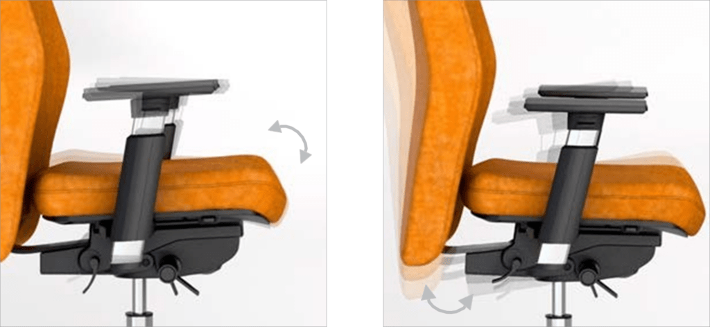 Di serie, i braccioli regolabili 4D possono essere regolati in altezza, larghezza, profondità e rotazione a 360°. Anche il poggiatesta è regolabile in profondità e altezza.